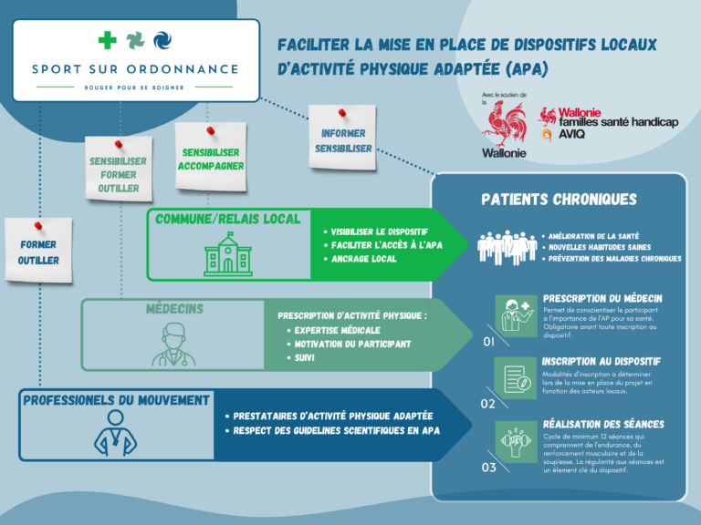 Les médecins, par leurs prescriptions, permettent au participants de se tourner vers l'activité physique afin d'améliorer leur santé.